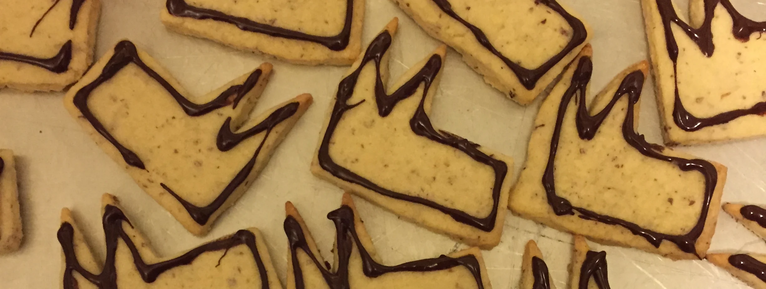 Found in every Christmas Cookie variety in Germany. A crunchy Hazelnut batter with a partial dark chocolate glaze brings the taste to a perfection ($6 for a quarter pound, $11 for half pound)